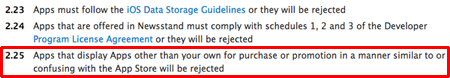 Tipped off last week by a number of sources, an investigation by PocketGamer.biz has cast light on what appears to be a new clause in the guidelines that restricts apps that provide links to apps that are not your own.