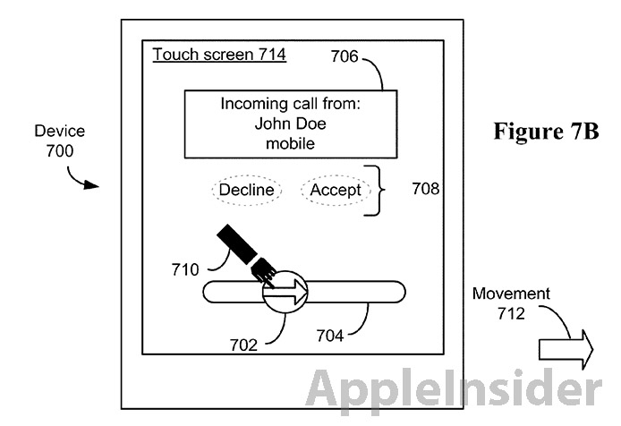 The newly-granted patent adds significant language to the ‘slide-to-unlock’ feature regarding what is displayed on screen after the unlock gesture is performed, adds the source. The filing details that an unlock gesture transitions from one application to another, for example, from a telephone application to a music player or vice versa. The lock/unlock feature may however apply to specific applications that are executing on the device, as opposed to the device as a whole.
