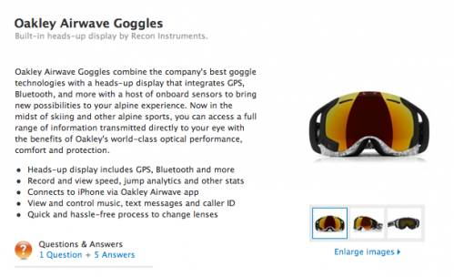 Yes, I am talking about the Oakley Airwave Goggle, retailing for $599.95 through Apple’s online store.