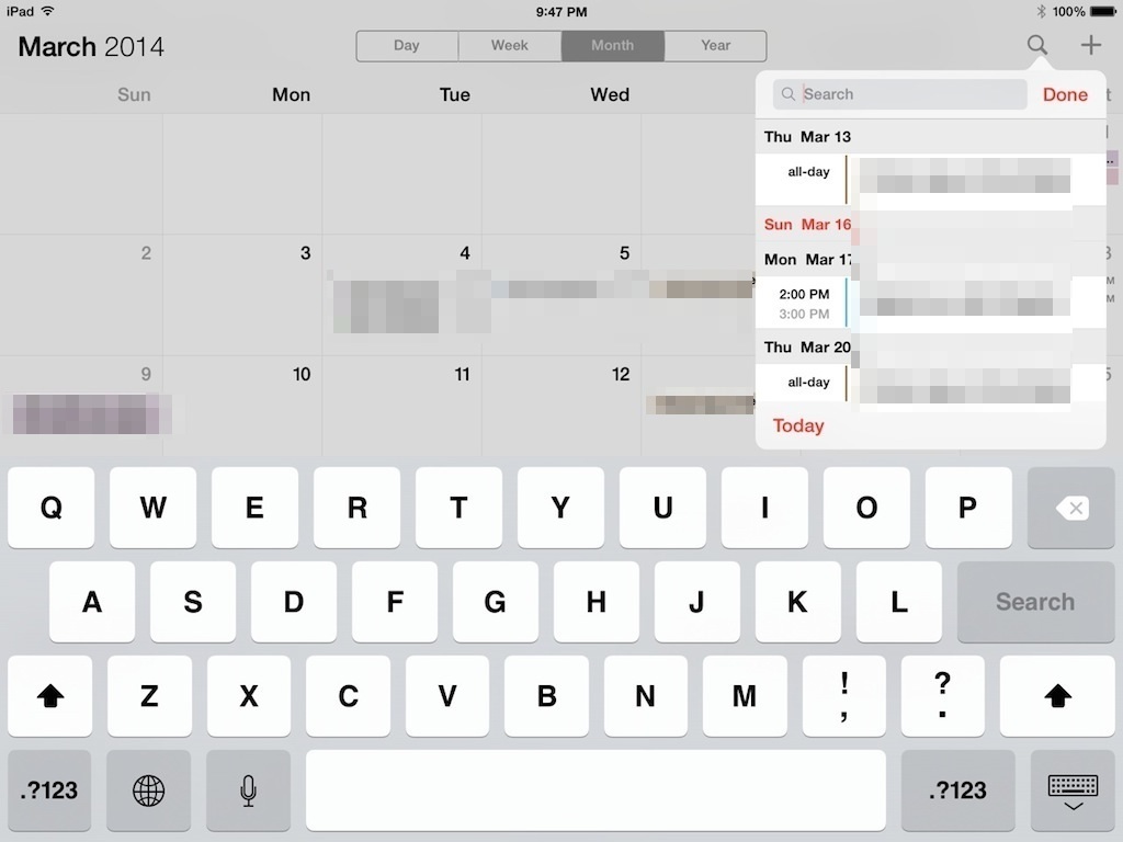iOS 7.1 is the version of iOS 7 that should have launched in the first place as it fixed a plethora of bugs and brought improvements as well. However, some design quirks for one are still in place (like the shift key icon), which includes being able to quickly access list view within the Calendar.